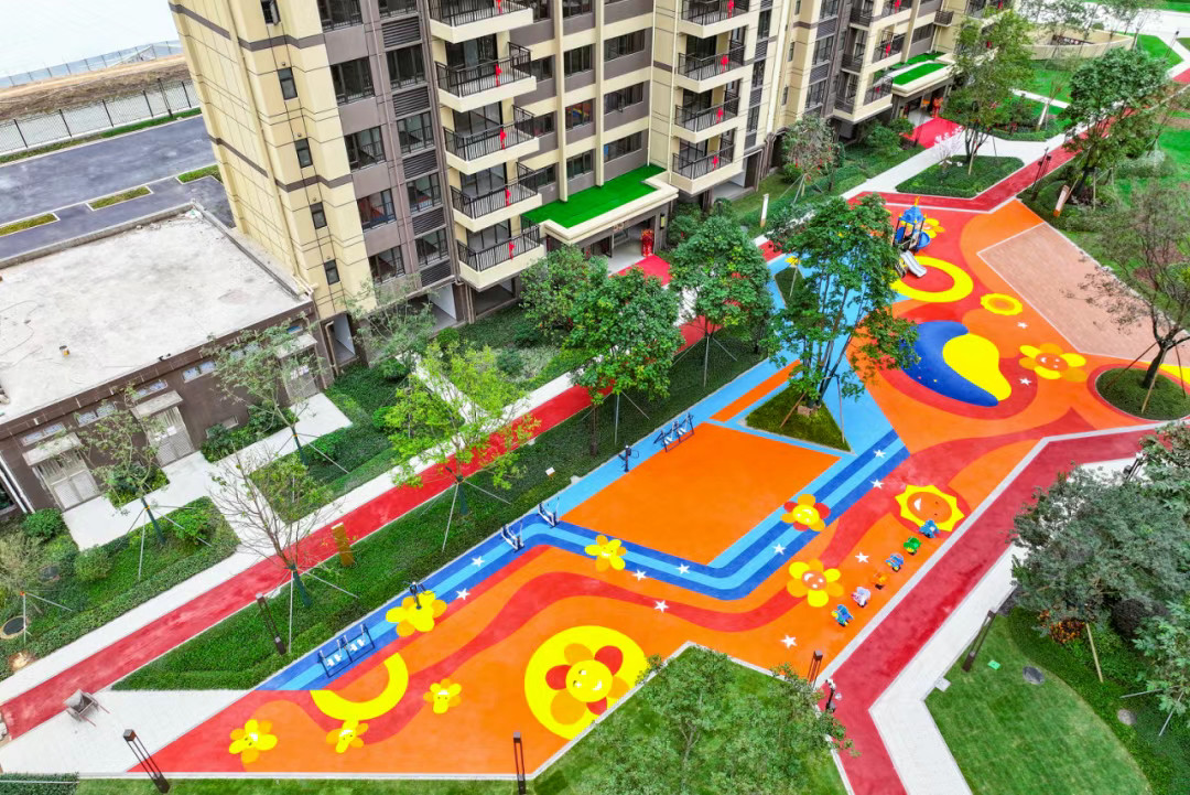 远洋集团该项目的景观设计紧扣“繁花”主题,精心打造阳光草坪、全龄活动区、健康泳池、林下休憩空间等多功能场所。开花植物的巧妙布置与地面繁花图案的点缀,营造出步移景异、花香萦绕的沉浸式体验。设计注重引景入园,将周边自然山河景观微缩融入园区,令人心旷神怡。丰富的林下空间与开阔草坪,鼓励业主驻足停留,深度体验自然,生动诠释了“建筑·健康“产品理念。